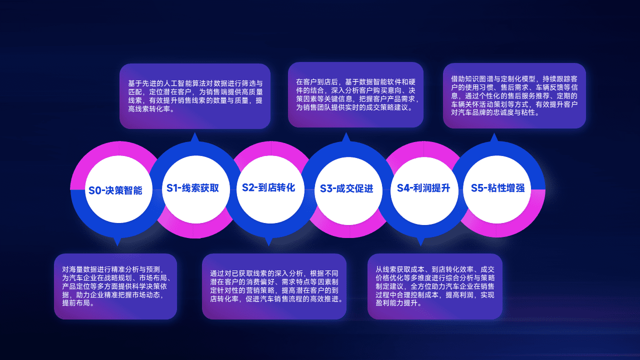 通过拓宽潜在客户来源、、、优化线索分配并提高到店转化率,,,,以增强销售效率。。同时,,,,利用线索数据不断优化分析模型,,,有效提升转化率,,,扩大营销影响力。。。。